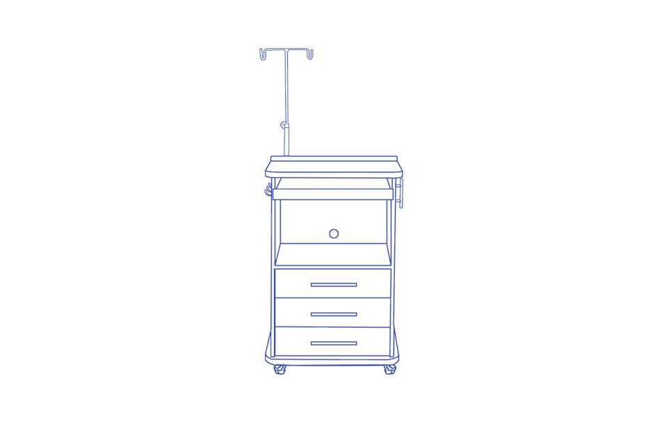Este mueble está diseñado para ser más compacto cumpliendo con los espacios necesarios para guardar materiales, instrumentos, equipos y medicamentos para emergencias.